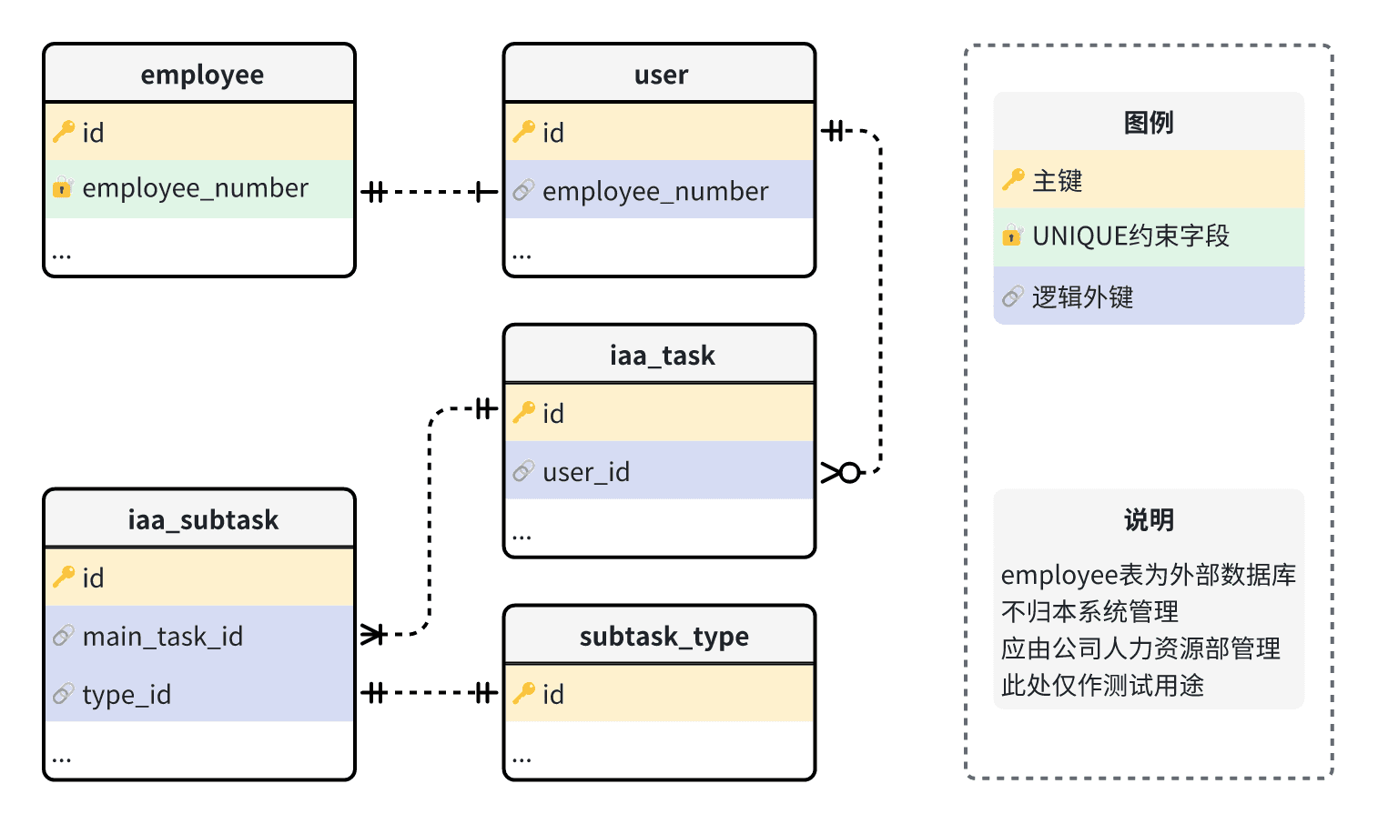 用户表(可使用系统的用户)、员工表(简单记录某个用户对应的员工信息)、美学评估任务表、美学评估子任务表、任务类型表