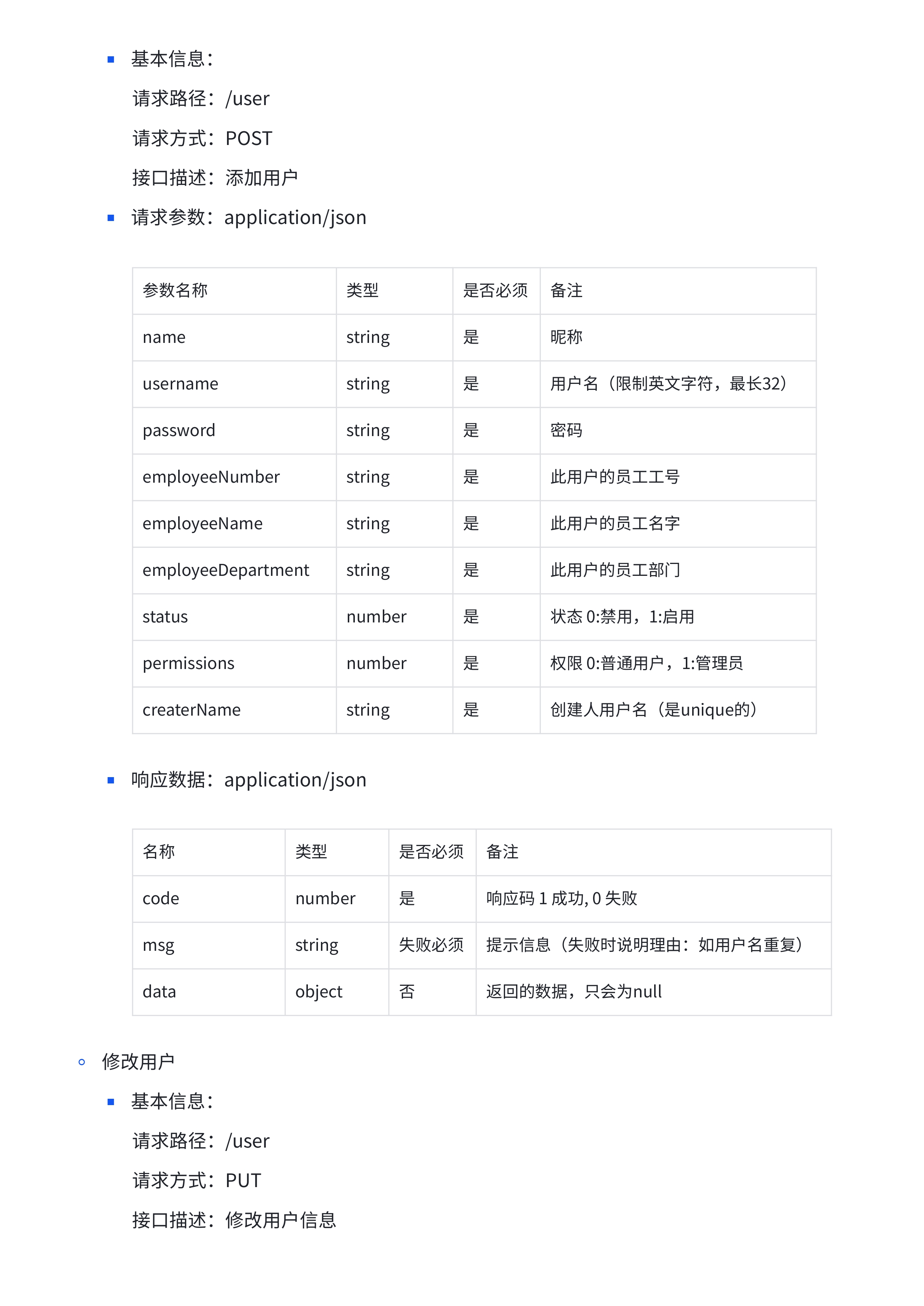 - 用户表(可使用系统的用户)